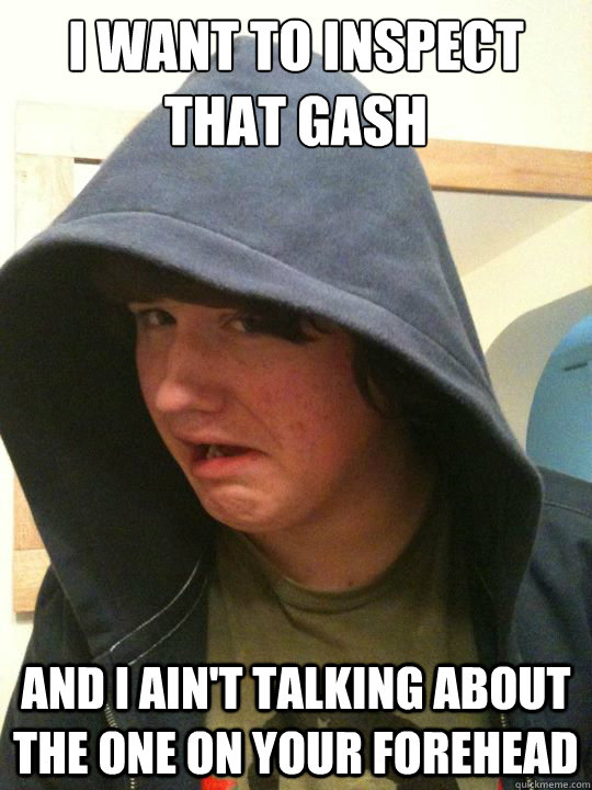 I want to inspect that gash and I ain't talking about the one on your forehead