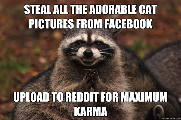 steal all the adorable cat pictures from facebook  upload to reddit for maximum karma  - steal all the adorable cat pictures from facebook  upload to reddit for maximum karma   Evil Plotting Raccoon