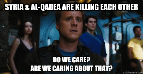 Syria & Al-Qadea are killing each other Do we care? Are we caring about that?