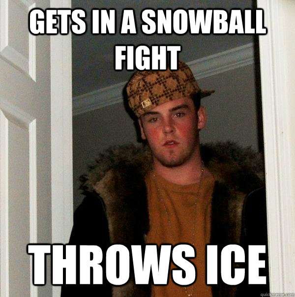 Gets in a snowball fight throws ice - Gets in a snowball fight throws ice  Scumbag Steve