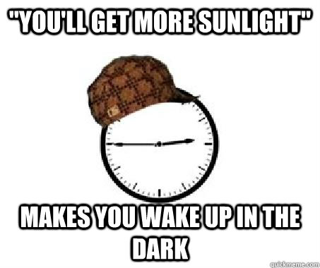 "You'll get more sunlight" Makes you wake up in the dark