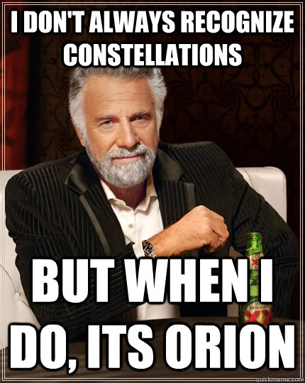 I don't always recognize constellations but when i do, Its orion - I don't always recognize constellations but when i do, Its orion  The Most Interesting Man In The World
