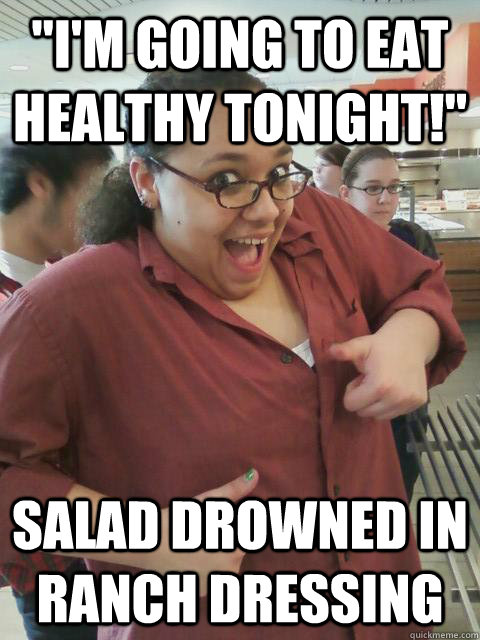 "I'm going to eat healthy tonight!" salad drowned in ranch dressing
