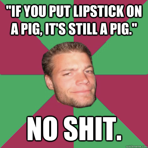 "IF YOU PUT LIPSTICK ON A PIG, IT'S STILL A PIG." NO SHIT.