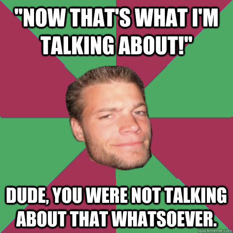 "NOW THAT'S WHAT I'M TALKING ABOUT!" DUDE, YOU WERE NOT TALKING ABOUT THAT WHATSOEVER.
