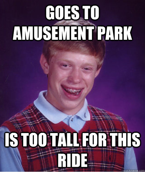 Goes to amusement park Is too tall for this ride - Goes to amusement park Is too tall for this ride  Bad Luck Brian