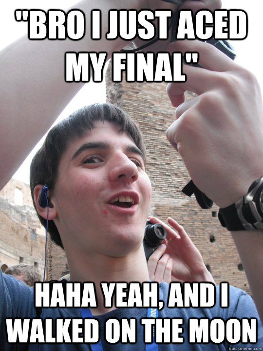 "bro i just aced my final" haha yeah, and I walked on the moon