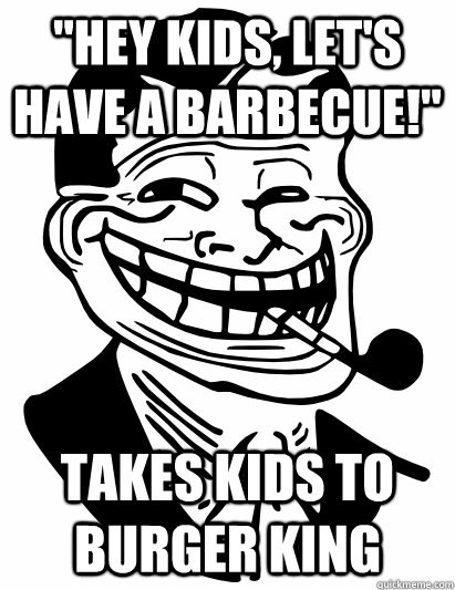 "hey kids, let's have a barbecue!" takes kids to burger king