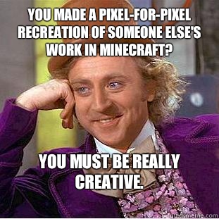 - You made a pixel-for-pixel recreation of someone else's work in minecraft? You must be really creative.