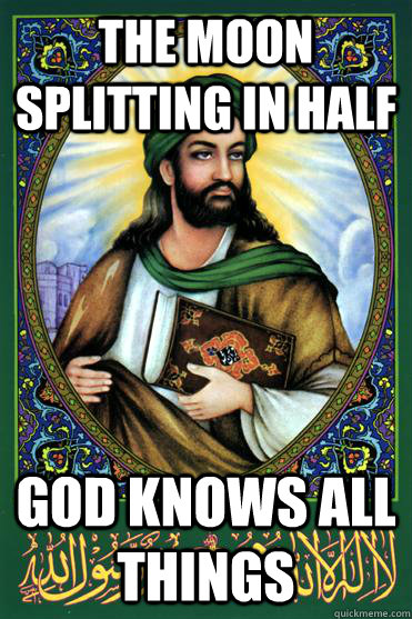 The moon splitting in half God knows all things