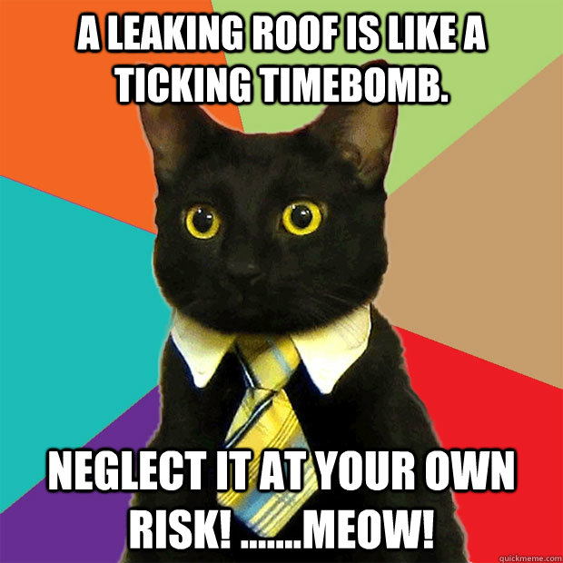 A leaking roof is like a ticking timebomb. Neglect it at your own risk! .......Meow! - A leaking roof is like a ticking timebomb. Neglect it at your own risk! .......Meow!  Business Cat