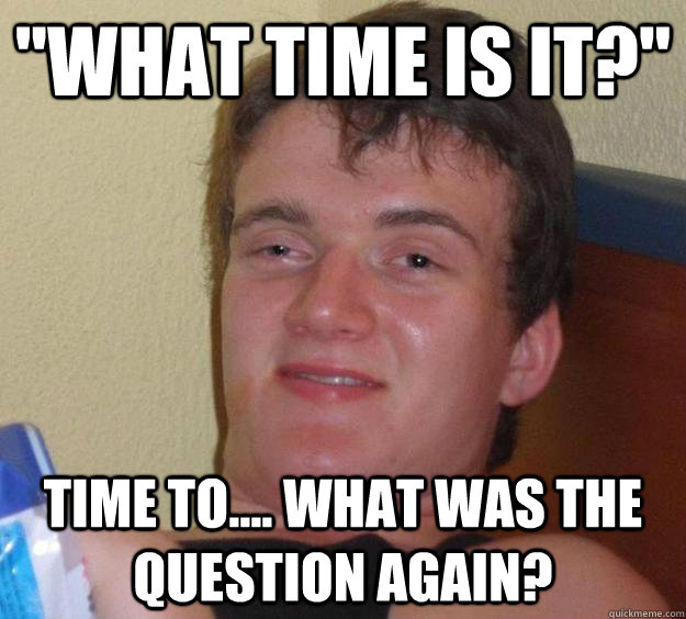 "What time is it?" Time to.... what was the question again?