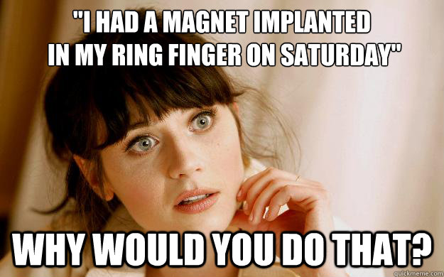 "I had a magnet implanted in my ring finger on Saturday" Why would you do that?