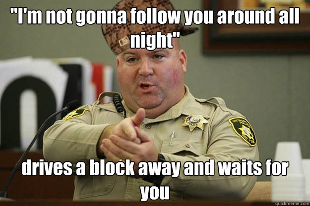 "I'm not gonna follow you around all night" drives a block away and waits for you
