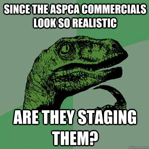since the aspca commercials look so realistic are they staging them? - since the aspca commercials look so realistic are they staging them?  Philosoraptor