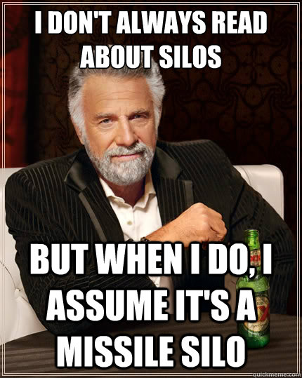 I don't always read about silos But when i do, I assume it's a missile silo - I don't always read about silos But when i do, I assume it's a missile silo  The Most Interesting Man In The World