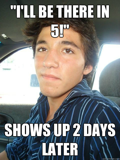 "I'll be there in 5!" Shows up 2 days later