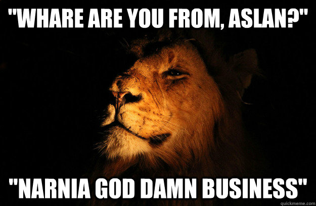 "Whare are you from, Aslan?" "Narnia God damn business"
