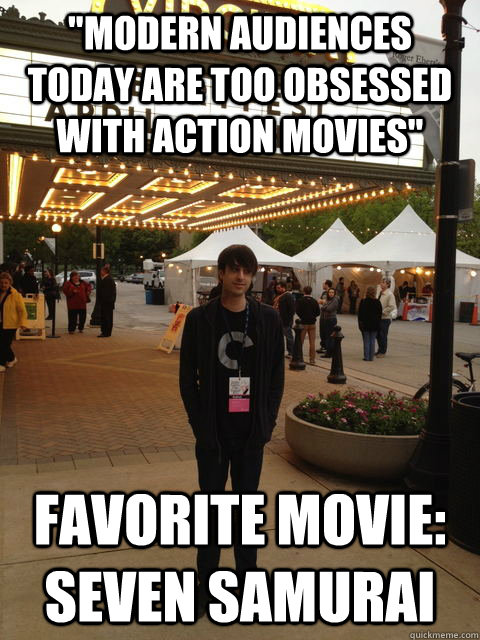 "Modern audiences today are too obsessed with action movies" Favorite movie: seven samurai