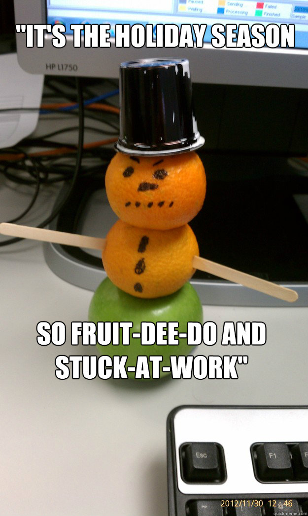 "It's the holiday season so fruit-dee-do and stuck-at-work"