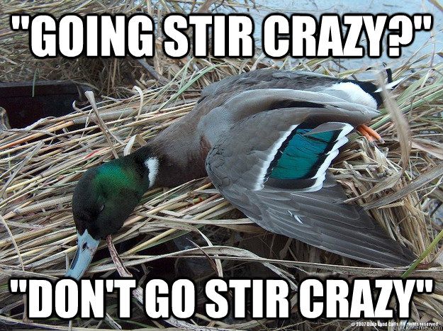 "Going stir crazy?" "Don't go stir crazy"