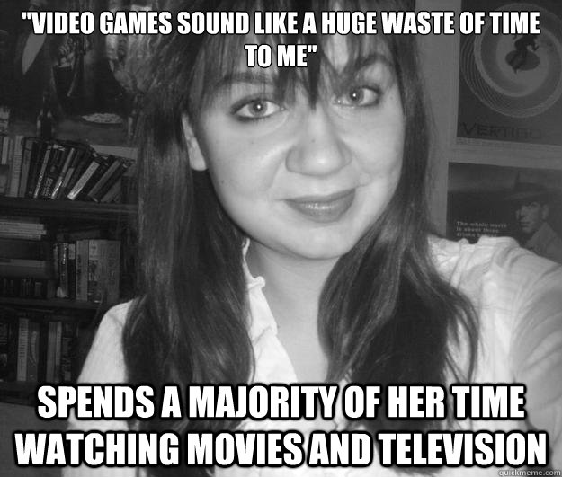 "Video games sound like a huge waste of time to me" spends a majority of her time watching movies and television