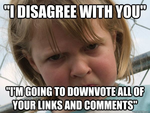 "I disagree with you" "I'm going to downvote all of your links and comments"