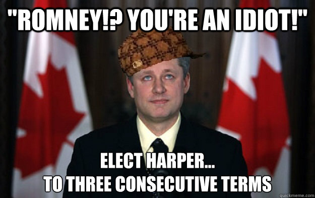 "Romney!? you're an idiot!" Elect Harper... to three consecutive terms