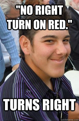 "No right turn on red." Turns Right