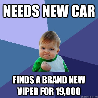 needs new car  finds a brand new viper for 19,000 - needs new car  finds a brand new viper for 19,000  Success Kid