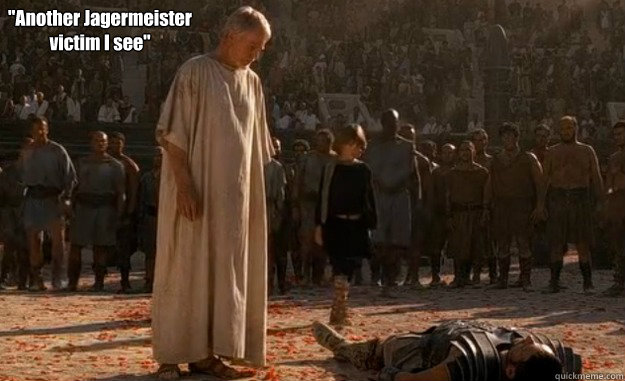 "Another Jagermeister victim I see"