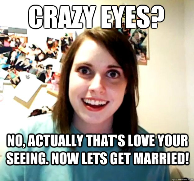 crazy eyes? no, Actually that's love your seeing. Now lets get married! - crazy eyes? no, Actually that's love your seeing. Now lets get married!  Overly Attached Girlfriend
