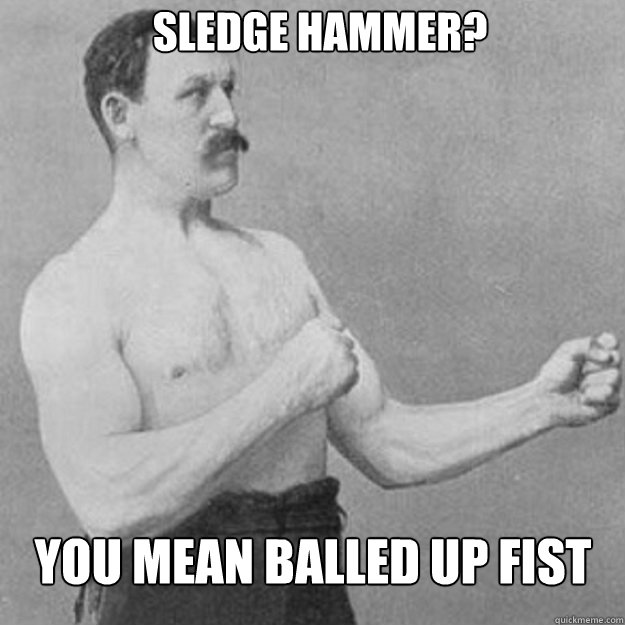 Sledge hammer? You mean balled up fist - Sledge hammer? You mean balled up fist  overly manly man