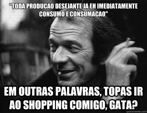 "toda producao desejante ja eh imediatamente consumo e consumacao" em outras palavras, topas ir ao shopping comigo, gata?