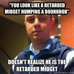 "You look like a retarded midget humping a doorknob" Doesn't realize he is the retarded midget