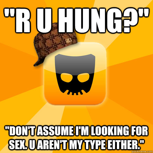 "r u hung?" "Don't assume I'm looking for sex. u aren't my type either."