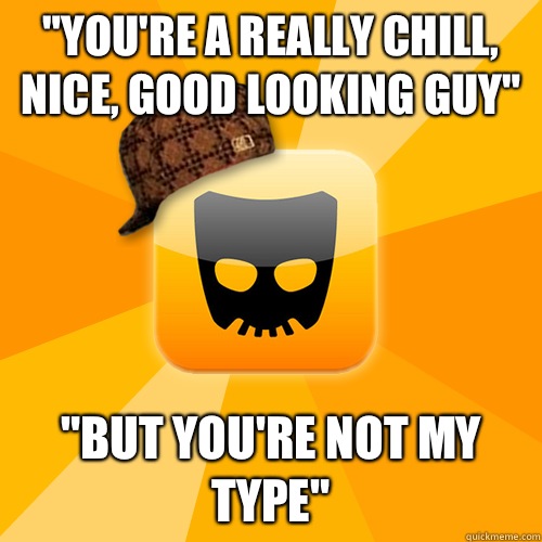 "You're a really chill, nice, good looking guy" "But you're not my type"