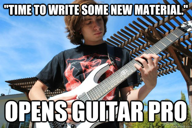 "time to write some new material." Opens guitar pro