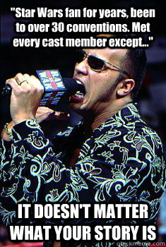"Star Wars fan for years, been to over 30 conventions. Met every cast member except..." IT DOESN'T MATTER WHAT YOUR STORY IS