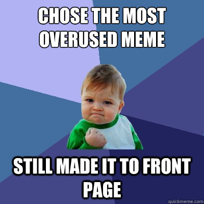 chose the most overused meme  still made it to front page  - chose the most overused meme  still made it to front page   Success Kid