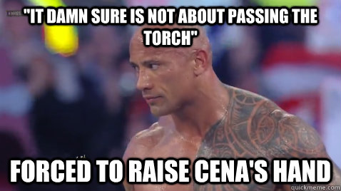 "It damn sure is not about passing the torch" Forced to raise cena's hand