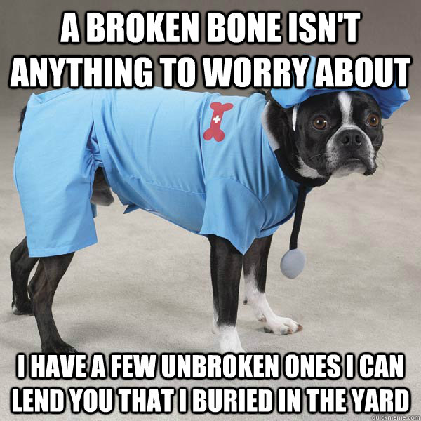 A broken bone isn't anything to worry about I have a few unbroken ones I can lend you that I buried in the yard