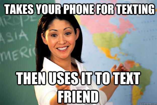 Takes your phone for texting Then uses it to text friend - Takes your phone for texting Then uses it to text friend  Unhelpful High School Teacher