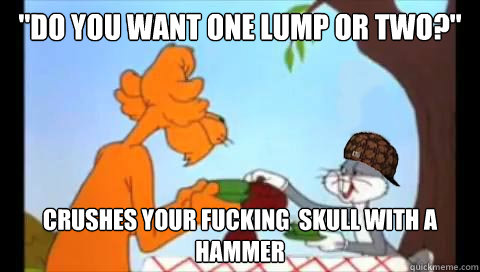 "Do you want one lump or two?" crushes your fucking skull with a hammer