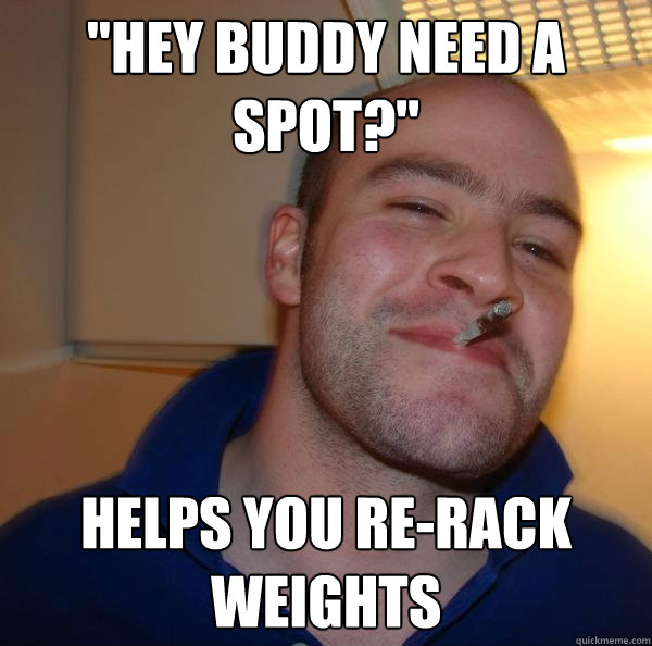 "Hey buddy need a spot?" Helps you re-rack weights