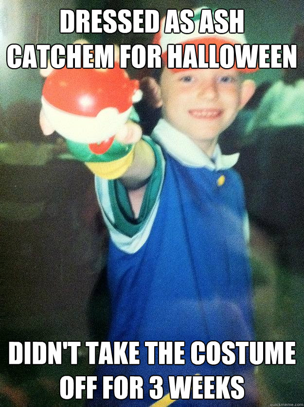 dressed as ash catchem for halloween didn't take the costume off for 3 weeks