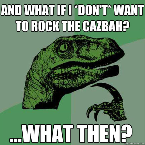 and what if i *Don't* want to rock the cazbah? ...What then?