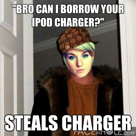 "Bro can I borrow your ipod charger?" Steals charger