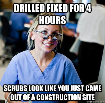 drilled fixed for 4 hours scrubs look like you just came out of a construction site