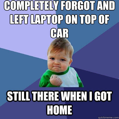completely forgot and left laptop on top of car still there when i got home